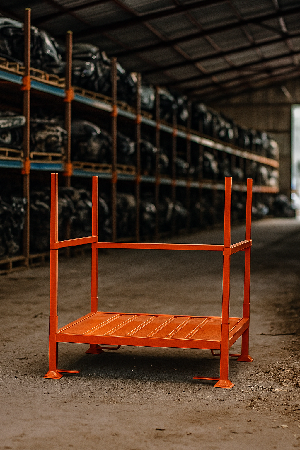 Motor transport container are metal structures designed for the safe storage and handling of used car engines. Robust and stackable, they ensure stability, component protection, and space optimization in workshops, scrapyards, and recycling facilities. Available in two different sizes and configurations, with options for customization.