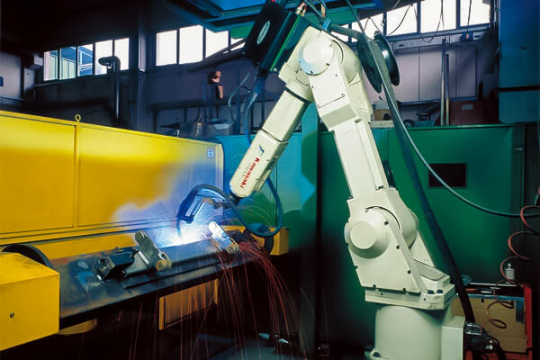 Our systems consist of two welding islands equipped with 6-axis Kawasaki welding robots, mounted respectively on the floor and on a column, each featuring two workstations with rotary-positioning lathes.